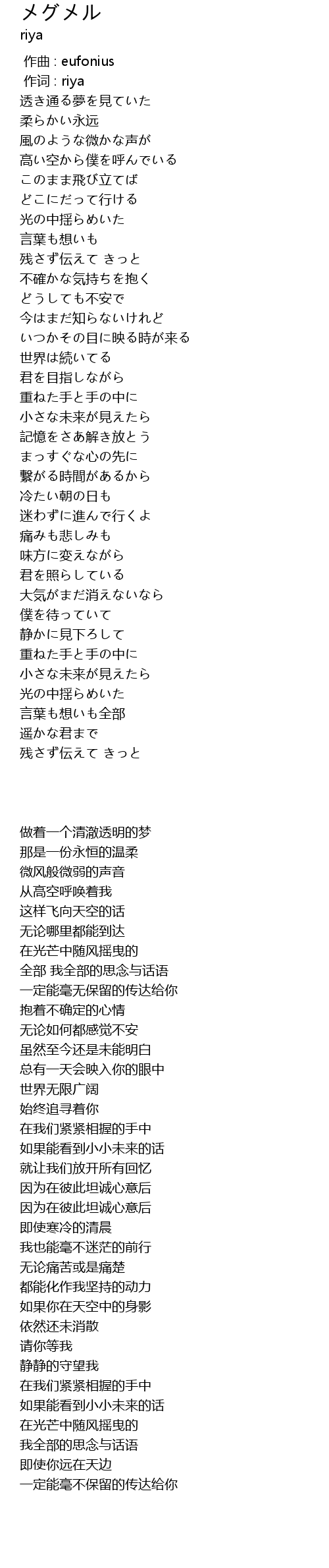| [00:20.620] | 高い空から僕を呼んでいる |