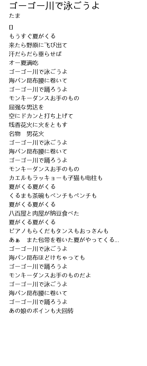 | Song | ゴーゴー川で泳ごうよ |