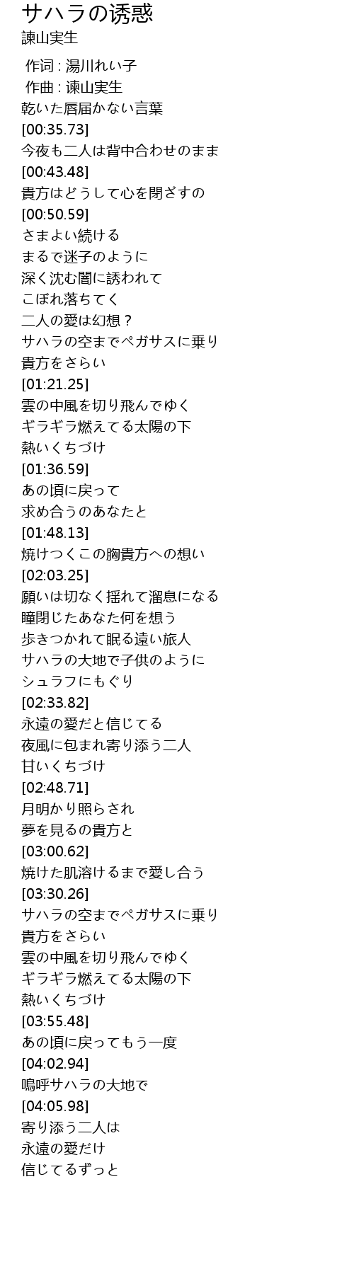 | [03:33.77] | サハラの空までペガサスに乗り |