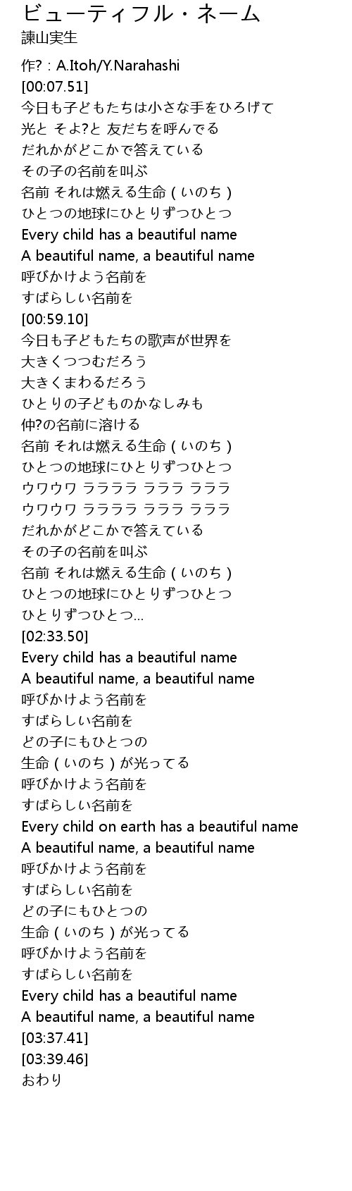 | [02:09.42] | 名前 それは燃える生命(いのち) |