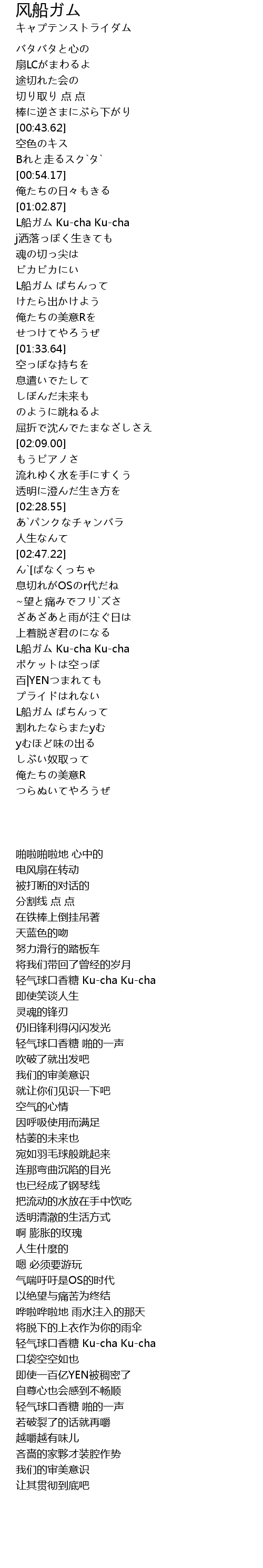 | [01:03.76] | L船ガム Ku-cha Ku-cha |