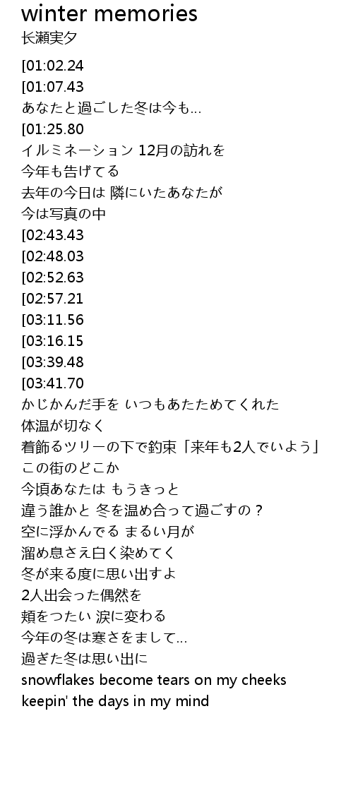 | [01:11.60][03:11.56] | あなたと過ごした冬は今も |