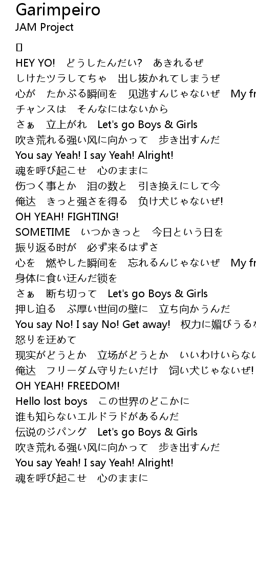 | 心を 燃やした瞬间を 忘れるんじゃないぜ My friends | |