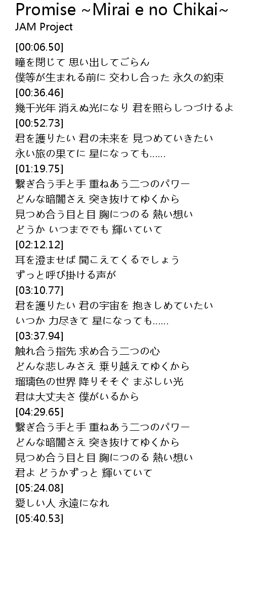 | [00:52.74] | 君を護りたい 君の未来を 見つめていきたい |