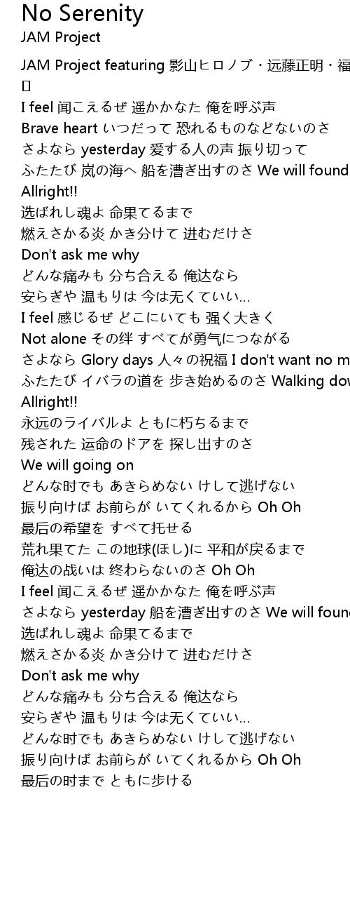 | 俺达の战いは 终わらないのさ Oh Oh | |
