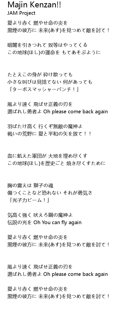 | 羽ばたけ高く 行くぞ無敵の魔神よ | |