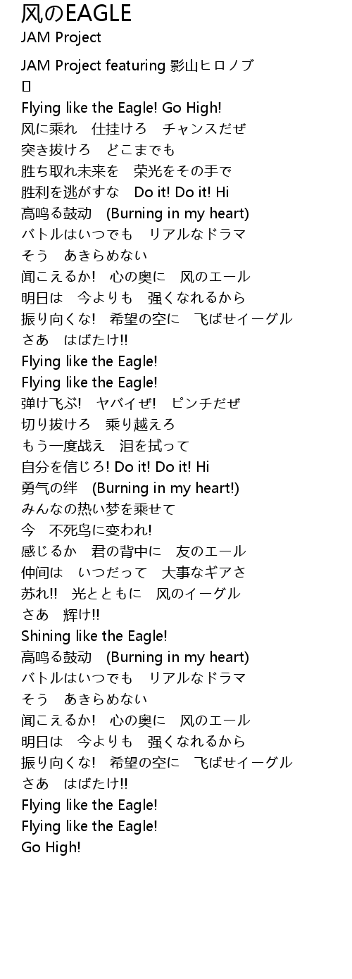 | 振り向くな! 希望の空に 飞ばせイーグル | |