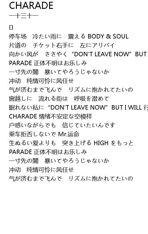 | 停车场 冷たい雨に 震える BODY & SOUL | |