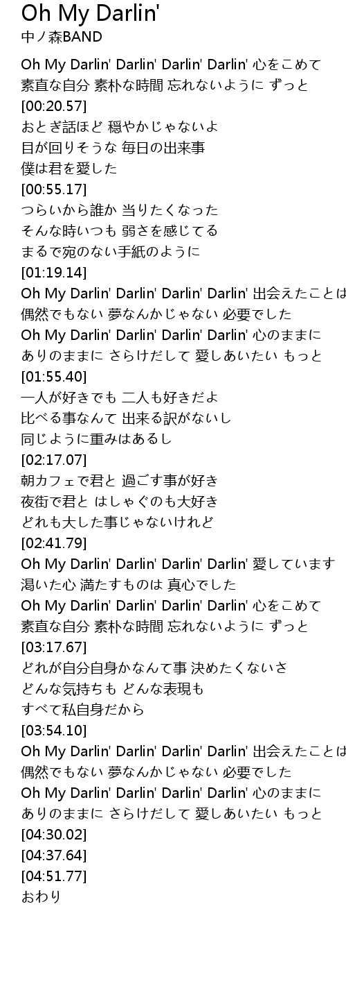 | [00:00.98] | Oh My Darlin' Darlin' Darlin' Darlin' 心をこめて |