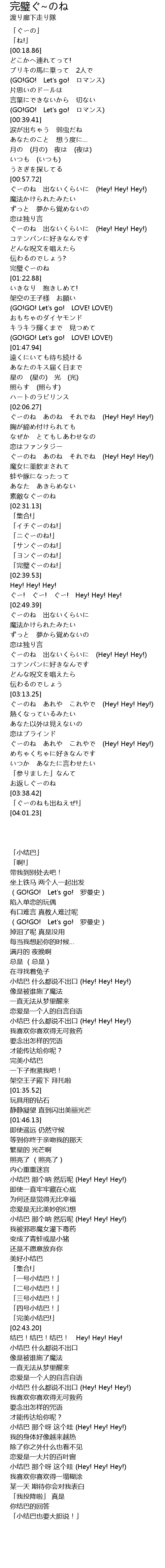 | [02:17.07] | ぐ〜のね あのね それでね (Hey! Hey! Hey!) |