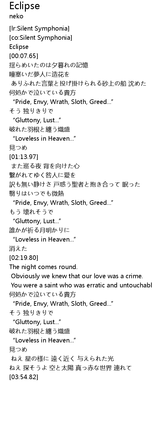 | [01:58.70] | " Pride, Envy, Wrath, Sloth, Greed..." |