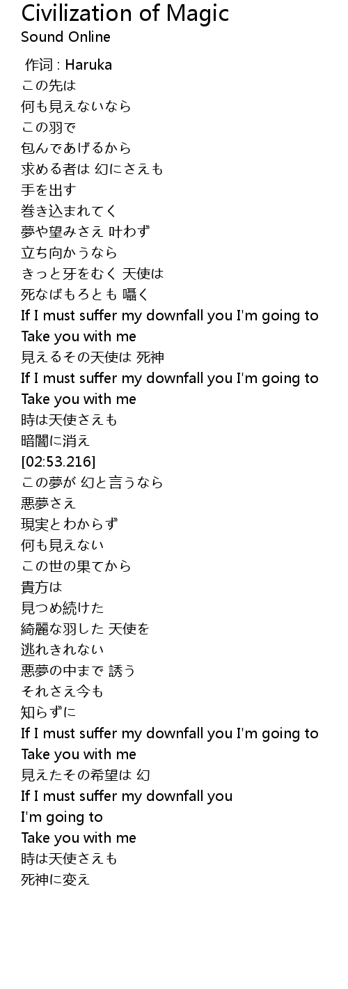 | [04:06.747] | If I must suffer my downfall you I'm going to |