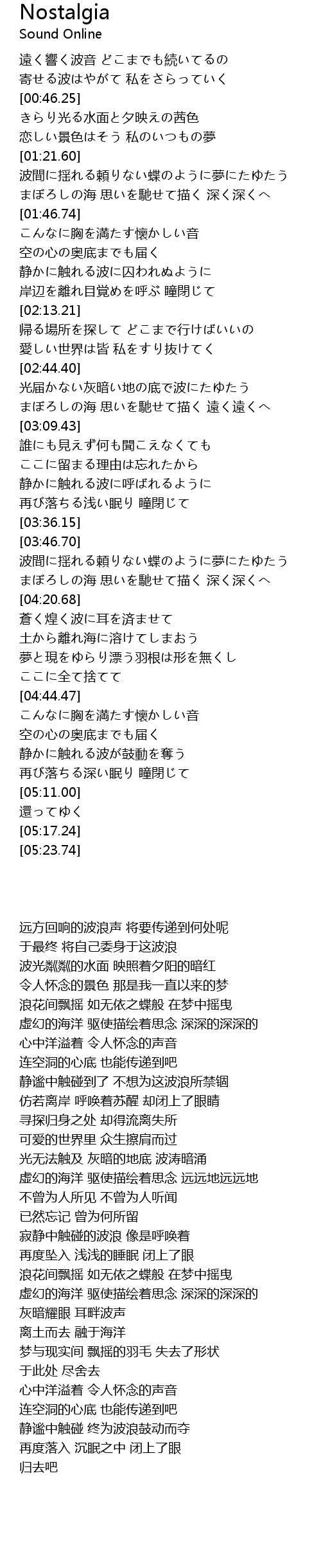 | [03:21.87] | 静かに触れる波に呼ばれるように |