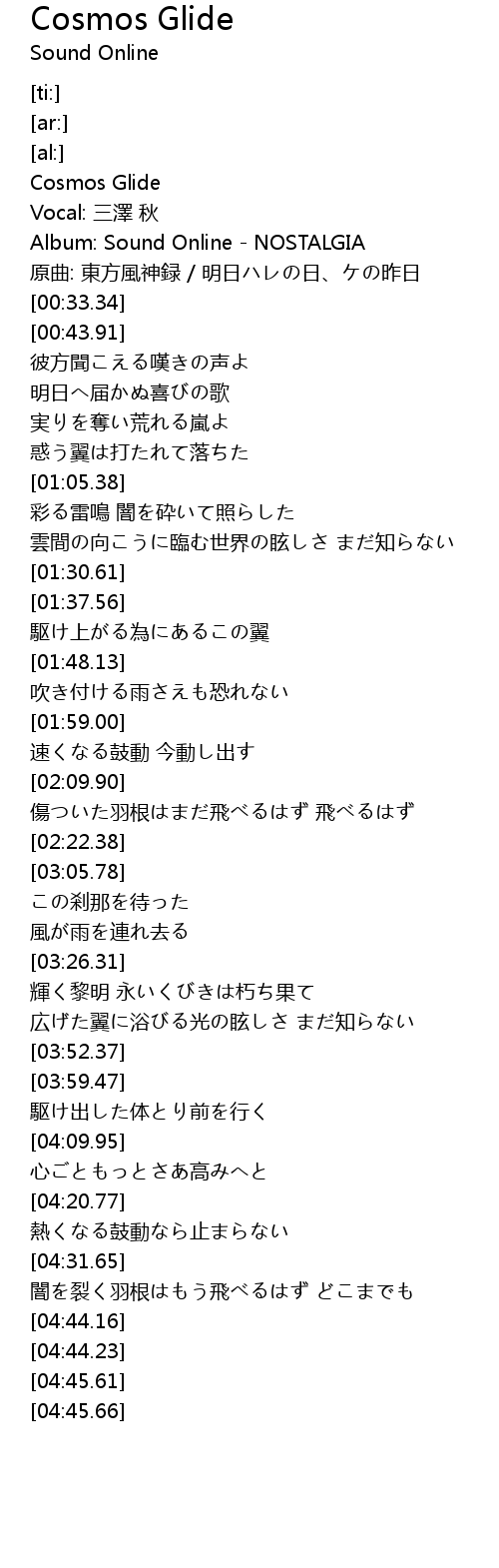 | [00:16.96] | Album: Sound Online NOSTALGIA |