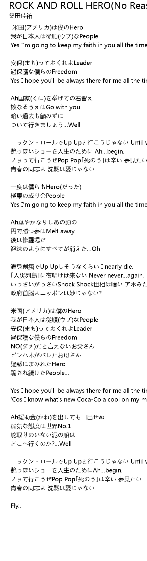 | ロックン・ロールでUp Upと行こうじゃない Until we die. | |