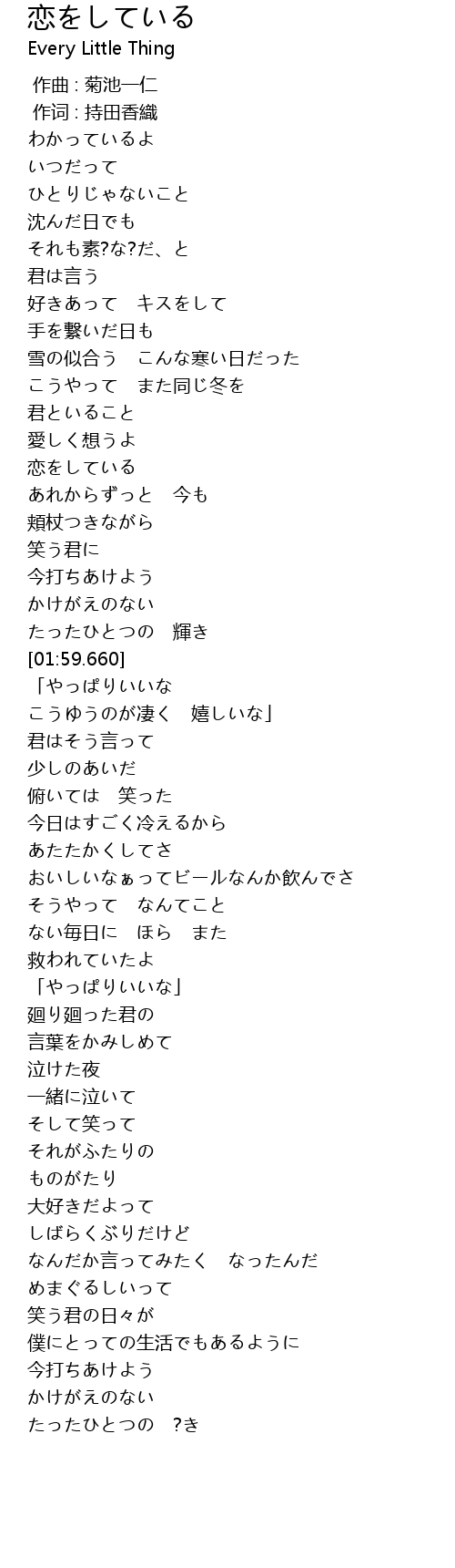 | [01:31.840] | 恋をしている |