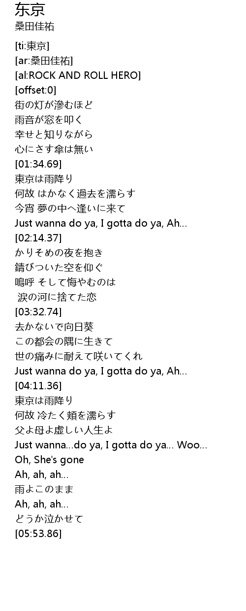| [01:40.30] | dōng jīng yǔ jiàng |