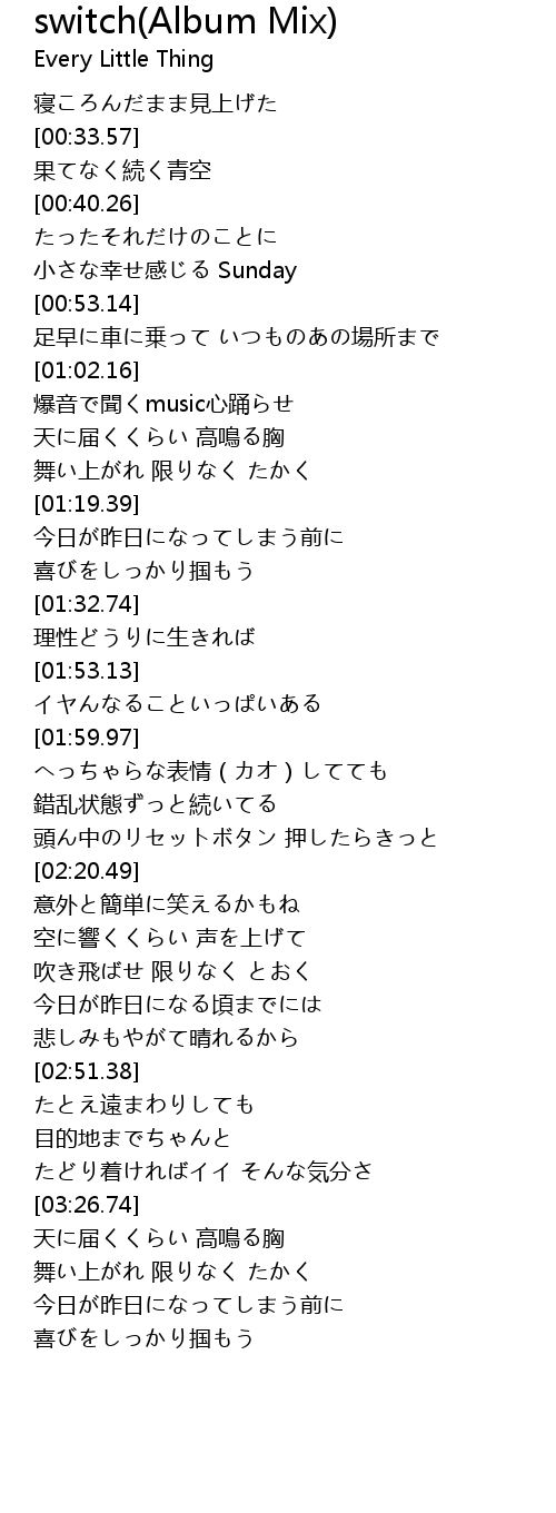 | [00:46.77] | 小さな幸せ感じる Sunday |