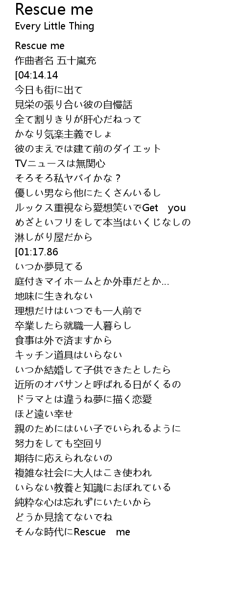 | [02:37.51][01:17.86] | sī Rescue me |