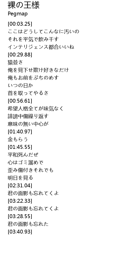 | [00:33.09] | 俺を見下せ欺け好きなだけ |