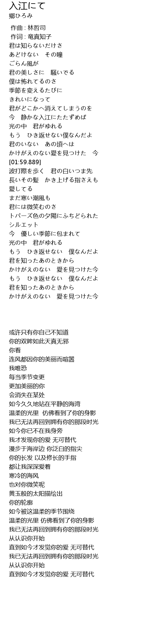 | [01:28.777] | 今 静かな入江にたたずめば |