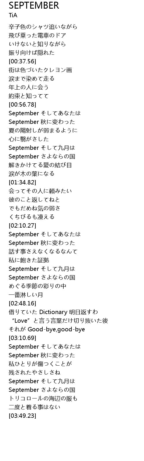 | [03:34.84] | September さよならの国 |