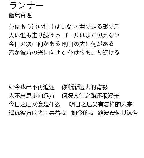 | [00:53.44] | 遥か彼方の光に向けて 仆は今も走り続ける |