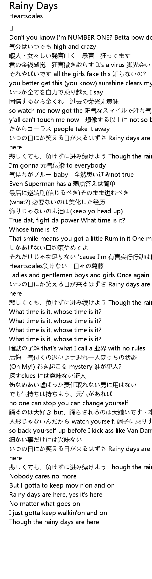 | いつの日にか笑える日が来るはずさ Rainy days are here, yes it's here | |