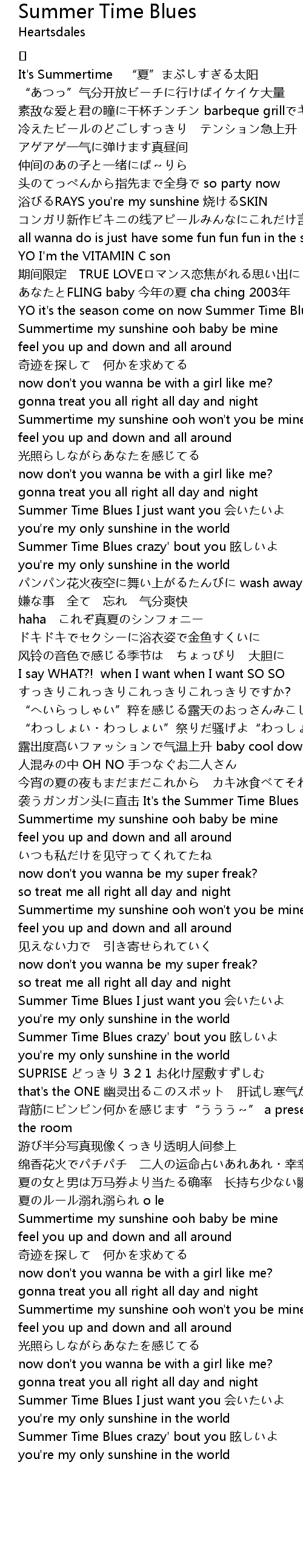 | Summer Time Blues I just want you 会いたいよ | |