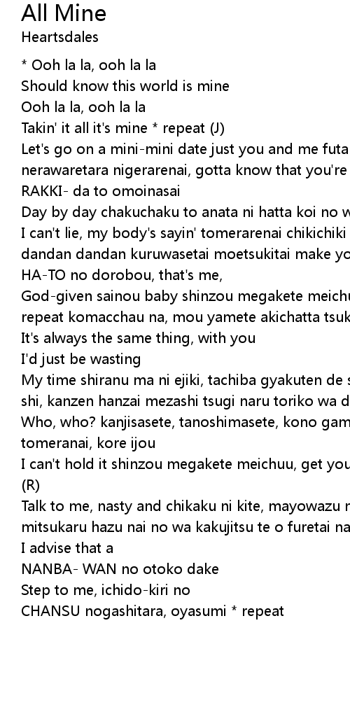 Takin' it all it's mine * repeat (J) |