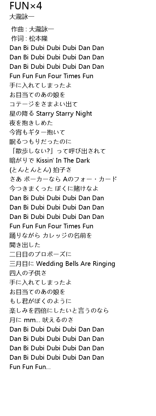 | [01:54.96] | Fun Fun Fun Four Times Fun |
