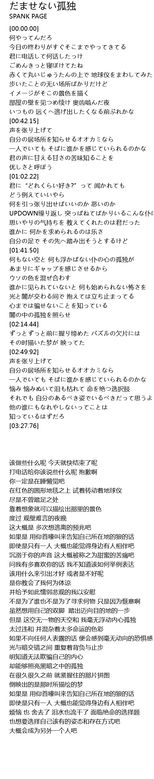 | [00:42.30] | 声を张り上げて 自分の居场所を知らせるオオカミなら |