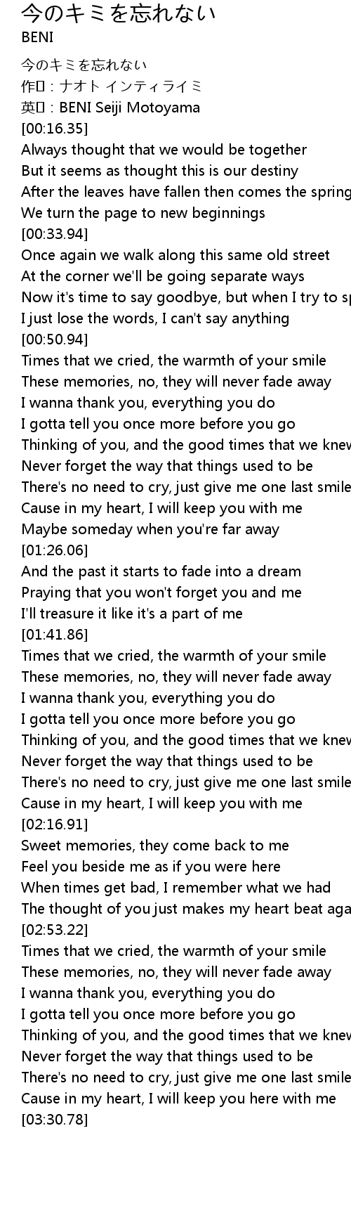 | [00:00.43] | 今のキミを忘れない |