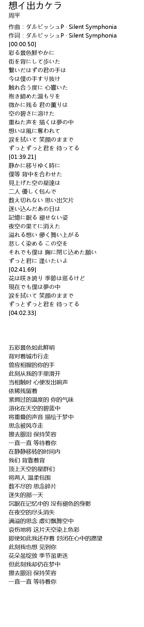 | [00:00.05] | 作词:ダルビッシュP · Silent Symphonia |