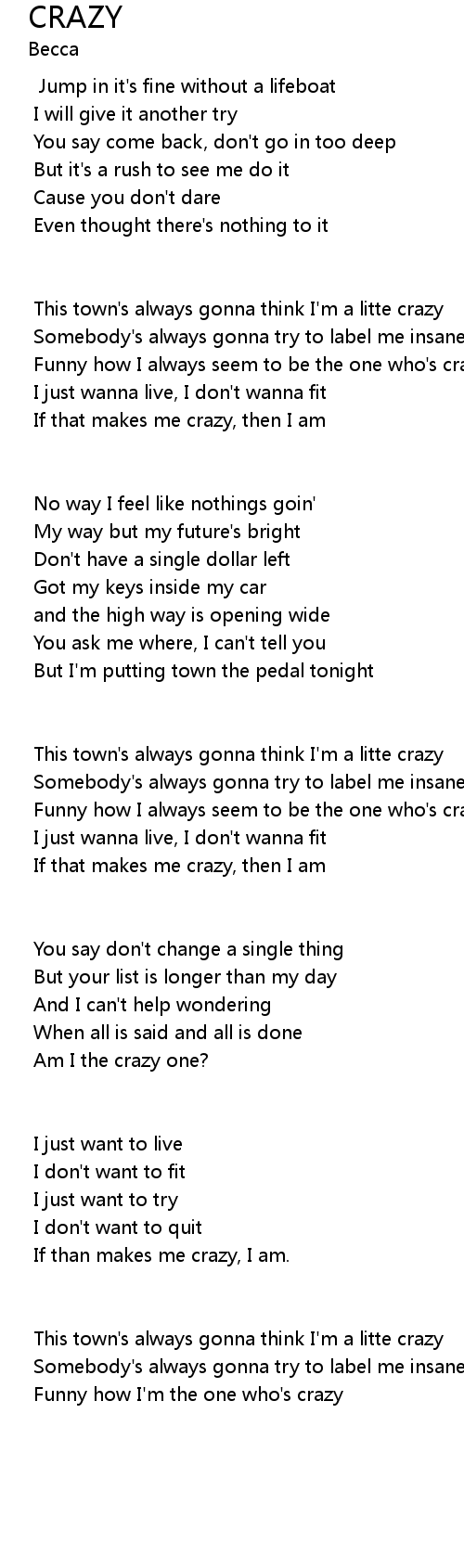 If that makes me crazy, then I am |
