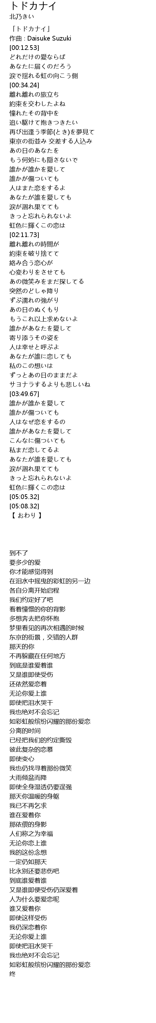 | [00:01.53] | 「トドカナイ」 |