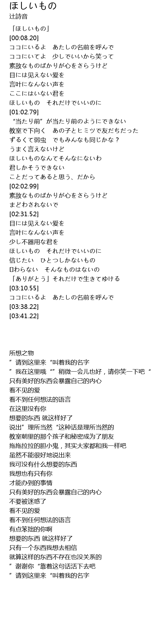 | [00:10.20] | ココにいるよ あたしの名前を呼んで |
