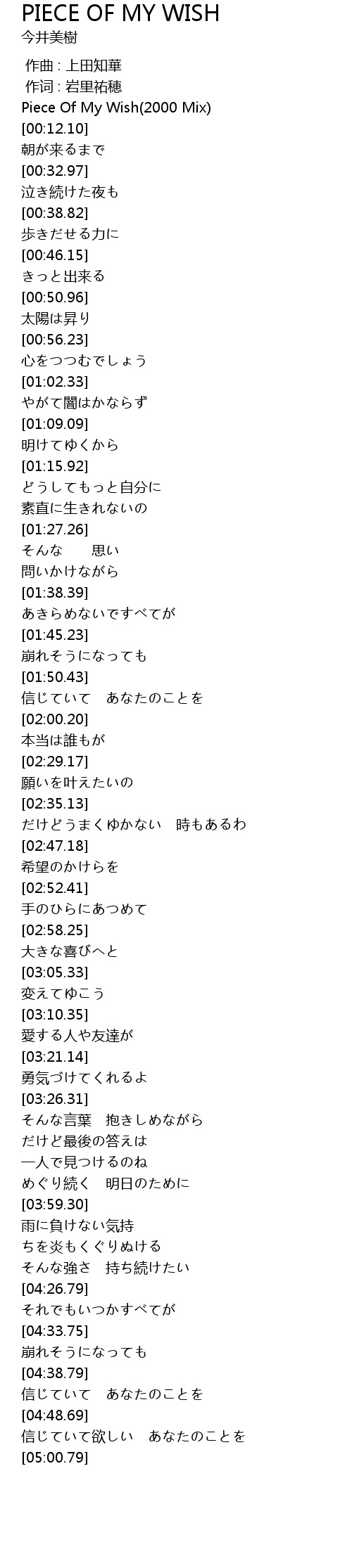 | [00:02.82] | Piece Of My Wish(2000 Mix) |