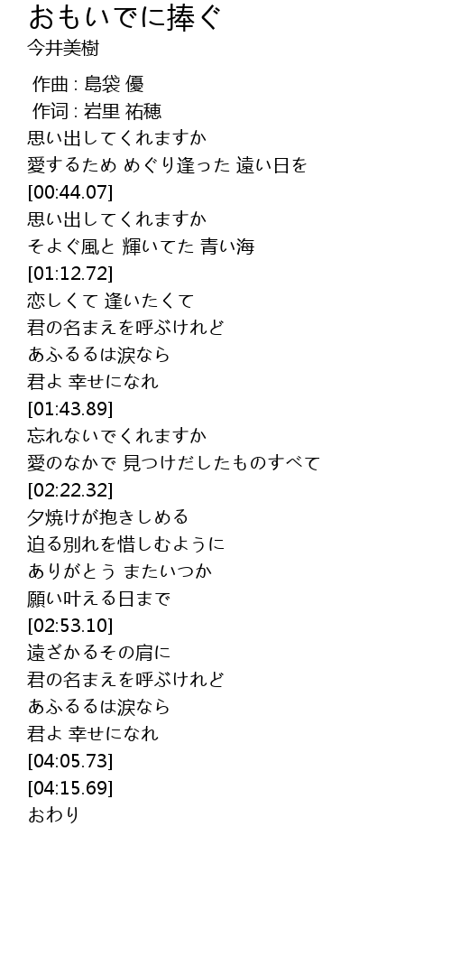 作词 : 岩里 祐穂 |