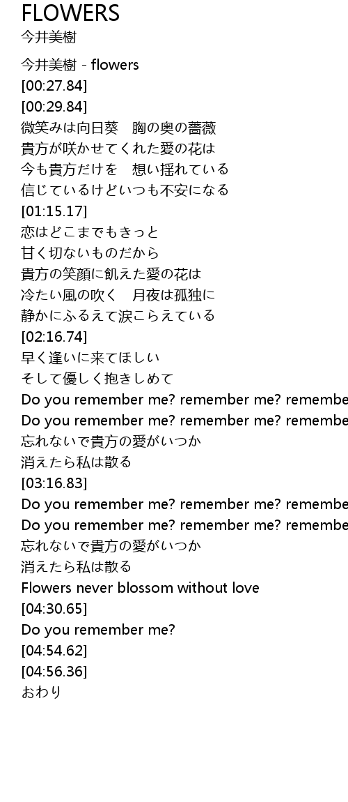 | [03:38.53] | Do you remember me? remember me? remember me? |