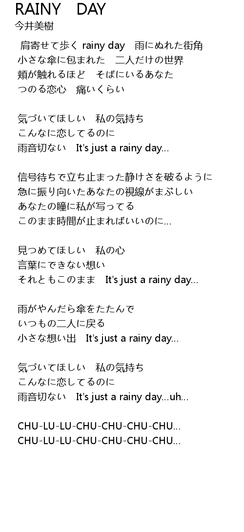 | 肩寄せて歩く rainy day 雨にぬれた街角 | |