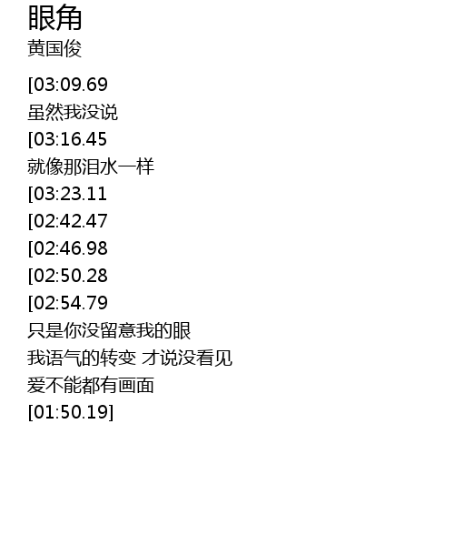 | [01:38.01] | zhi shi ni mei liu yi wo de yan |
