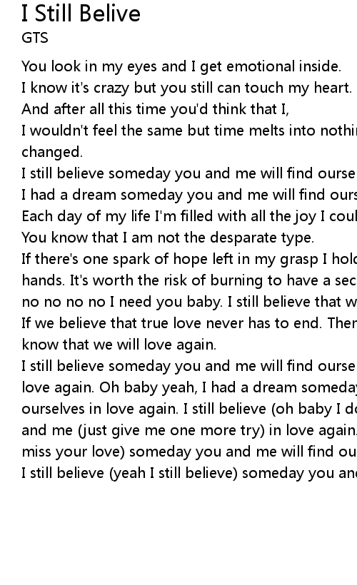 I still believe someday you and me will find ourselves in |