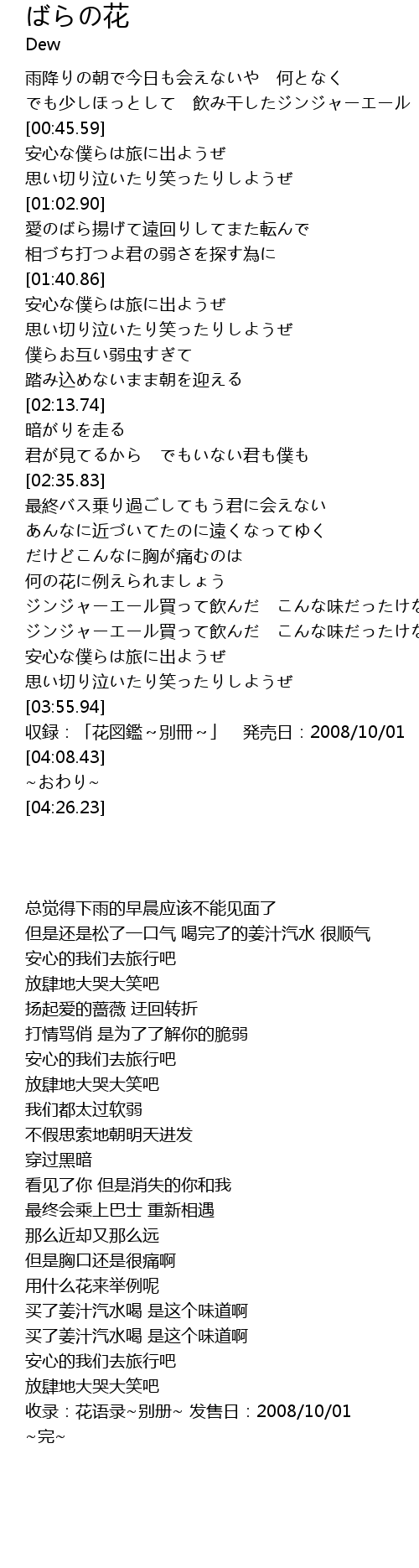 | [04:04.31] | 収録:「花図鑑~別冊~」 発売日:2008/10/01 |
