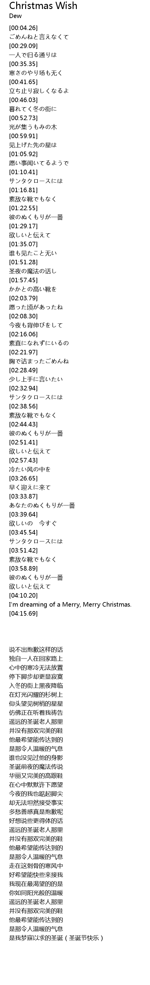 | [04:13.01] | I'm dreaming of a Merry, Merry Christmas. |