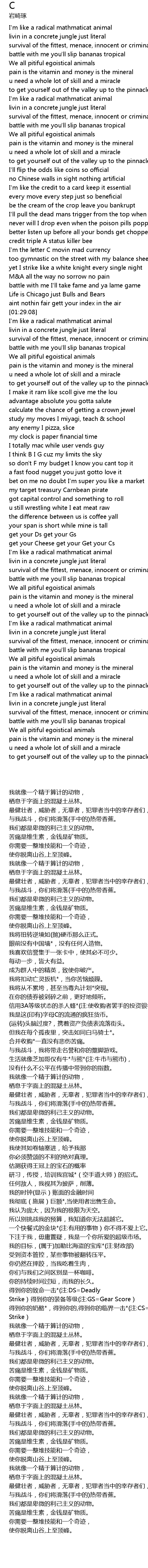 I'm the letter C movin mad currency |