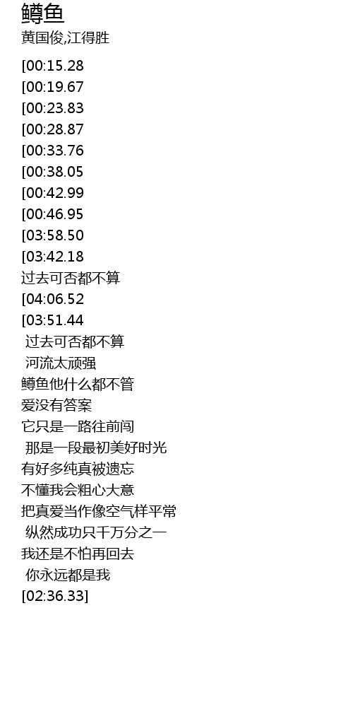 | [03:35.53][00:46.95] | 命运始终和我对抗 |