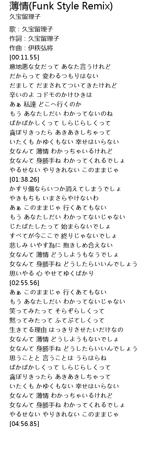 | [04:12.45] | 女なんて 薄情 どうしようもないでしょ |