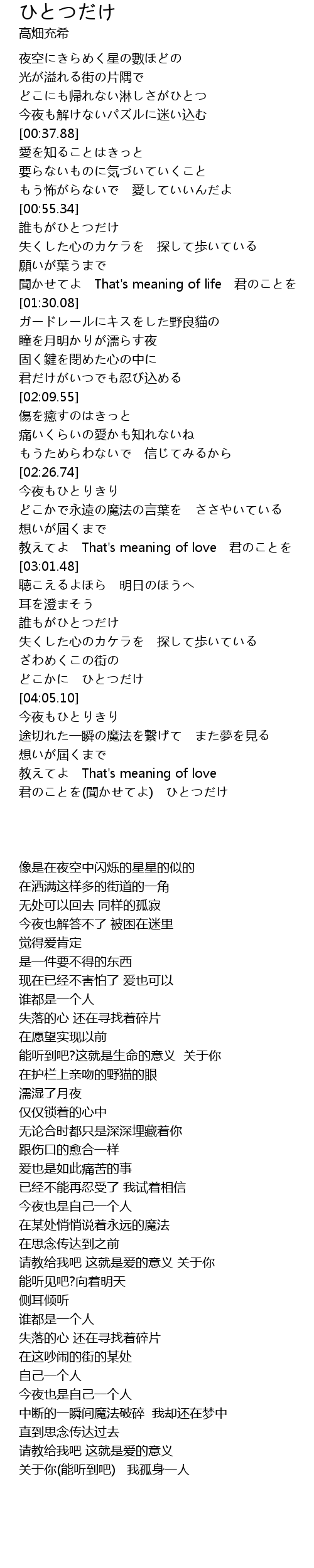 | [00:22.52] | どこにも帰れない淋しさがひとつ |