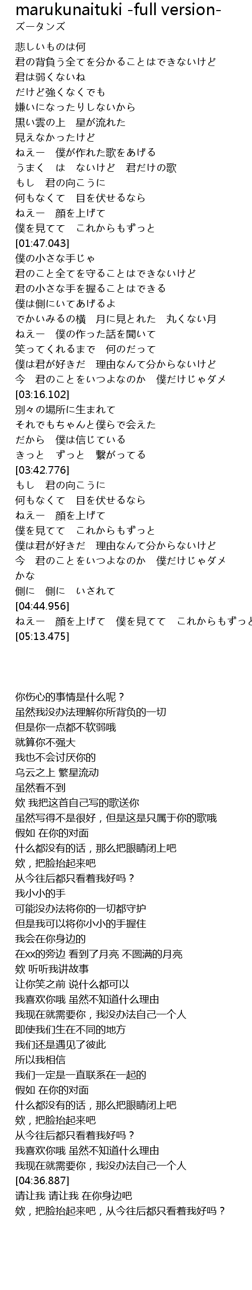 | [01:13.621] | うまく は ないけど 君だけの歌 |